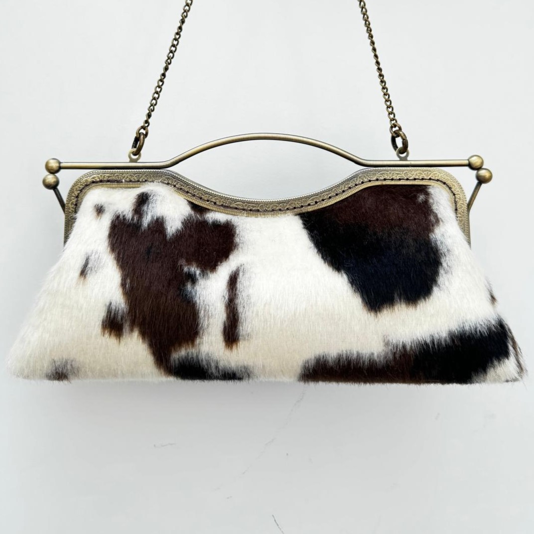 Baguette in eco pelliccia animalier color burro, marrone e nero, fodera in raso.