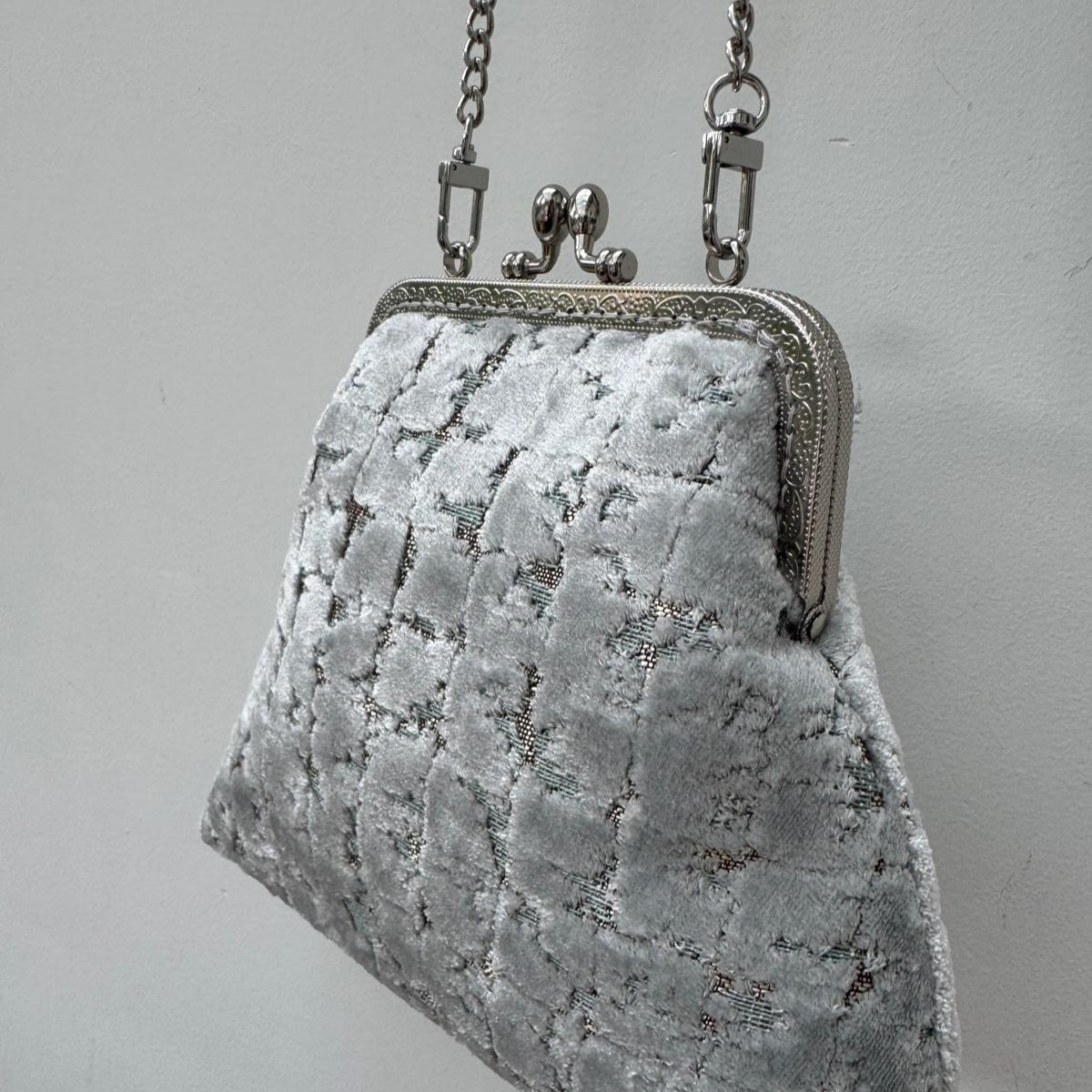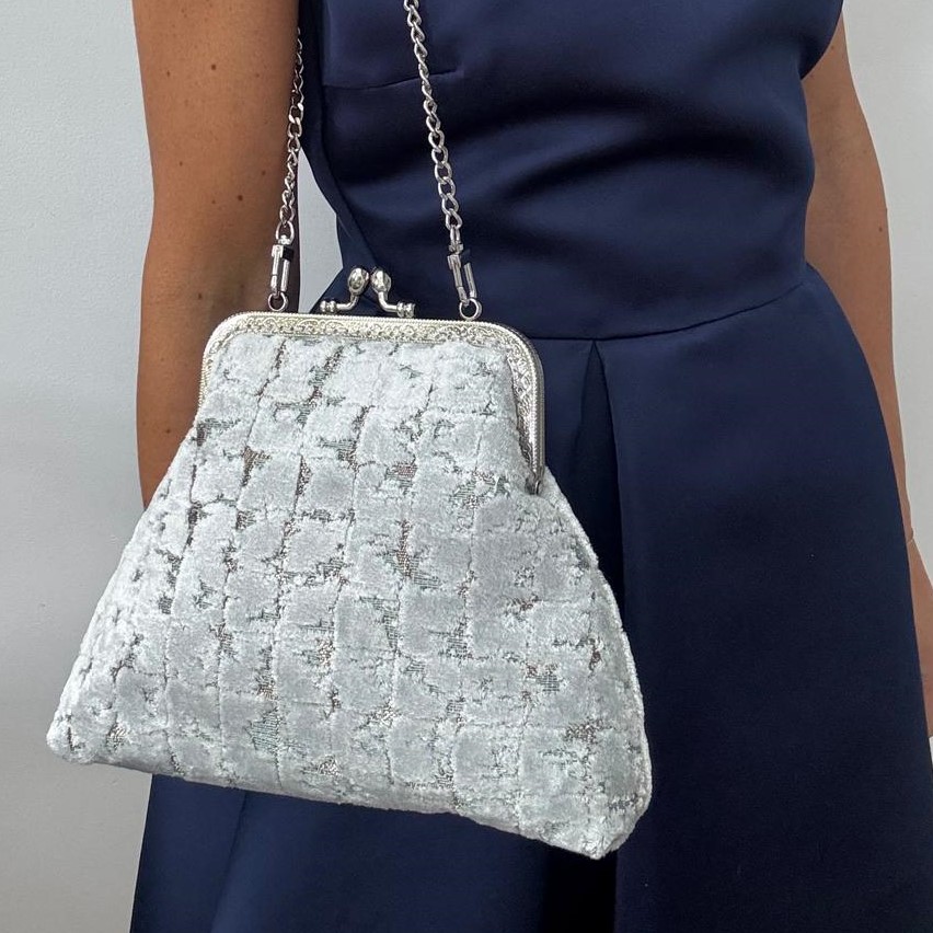 Borsina in un prezioso tessuto damascato con fodera in raso.