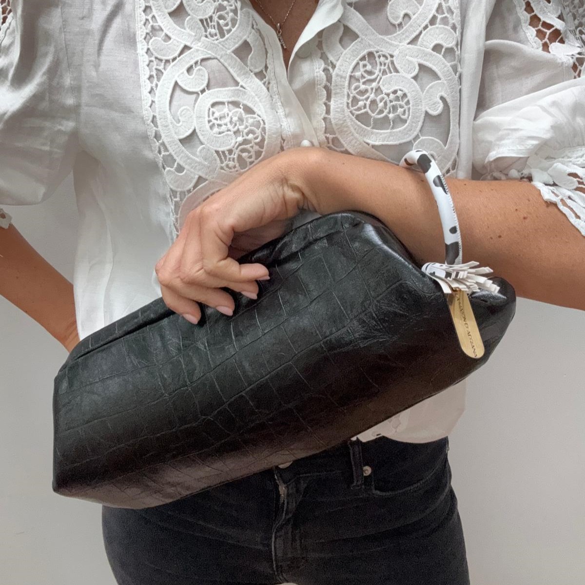 La tipologia della tracolla ed il colore di eventuali charme potrebbero variare leggermente. Si tratta di una borsa realizzata a mano, eventuali piccole imperfezioni sono proprie di un prodotto artigianale.Spedizioni